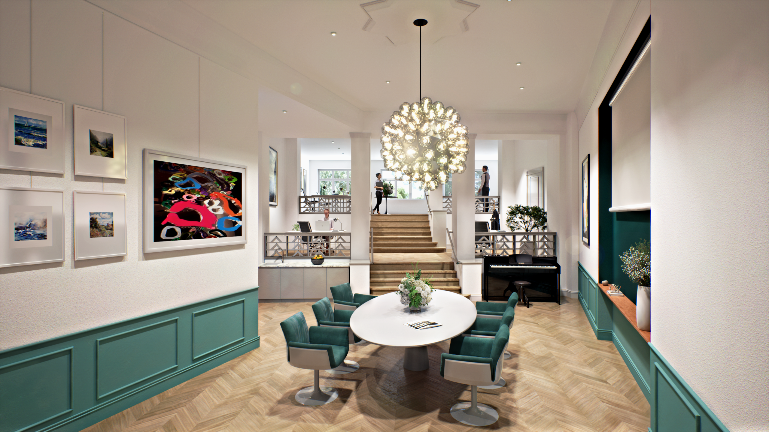 Wo Immobilien als gebaute Umweltgestaltung Raum zum Wohlfühlen geben, ist Kunst ein konstituierender Bestandteil. Kunst schafft existentielle Dialoge über „Eroberung des Raumes“ sowie das „Innen und Außen“ mittels Form, Linie, Farbe und Lichtführung.